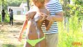 男優がTバックを引き剝がすと2分31秒に無修正のオマンコが露出、ビラビラは黒ずんでなくて肌と同じ色でワギナは綺麗です。